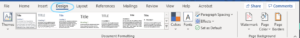 There are lots of ways to make your document stand out. In Word, you can alter the design of your document with a few clicks. On the top ribbon click on the design tab. Here you’ll find a range of themes, colours and borders too. Microsoft Word Screenshot