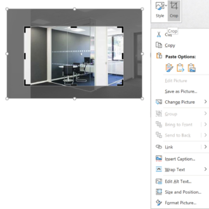 Adding images into word can really transform a document, but it can be frustrating dealing with images. For example, you may want to cut out parts of the image so that it fits your word document better.  To crop an image, just right-click the image that you would like to crop and there should be an option to crop the image. This will bring up a box with black corners – move this to crop your image in your desired way – word will fade out the parts that will not be in the newly cropped image. This can be extremely useful when images have to be replicated or when images have been print screened and there is the main area you would like to focus on.