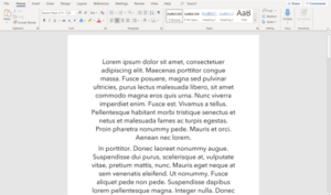 There will be times when working in word where you may want to use placeholder text. To do this you can use a command that generates Lorem Ipsum, by typing  =lorem(10,10) then clicking enter to activate the command. Microsoft Word Screenshot