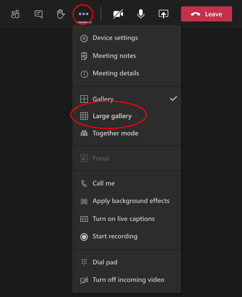 Previously in Teams meetings, users were only able to view up to 9 people’s videos on screen during a video call. This was limiting for larger meetings so Microsoft have created the Large Gallery View feature which will allow up to 49 people to be visible on screen during a video call. This works on meetings of 10+ people and Teams automatically arranges the windows for optimal viewing.How do I enable large Gallery View