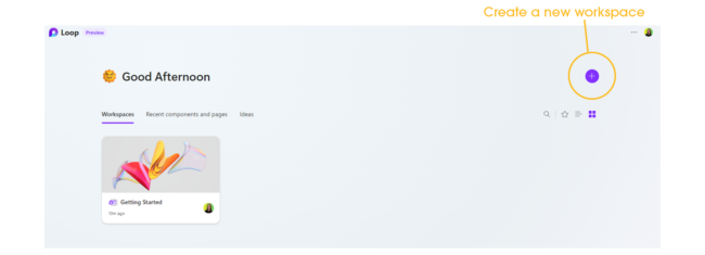To get started with Microsoft Loop, you need to have a Microsoft 365 subscription. You can access Loop from the Loop website, log in to 365 and this should take you to the workspace homepage where you can click on the + icon to create a new workspace for your project.
