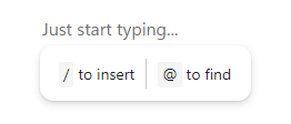 You can then add content to your page by either typing / to create a new piece of content or by typing @ to find and add existing content,