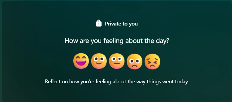 And finally, Wind Down offers a series of closing activities, including taking a breather break, and reflecting on your day through a simple emoji click. You can then add a note to reflect at a later date.
