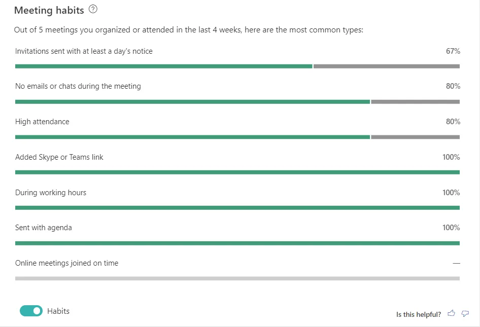 Viva Insights analyses your work habits and reports on how well you adhered to best practice.