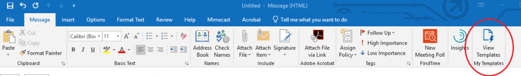 Often people find they are sending similar emails on a regular basis. To save time, you can create template emails in outlook. So, you only need to write the email once and then you can just select the template and adapt as needed for the occasion. To implement and create templates all you need to do is open a new email and click View Templates on the ribbon.