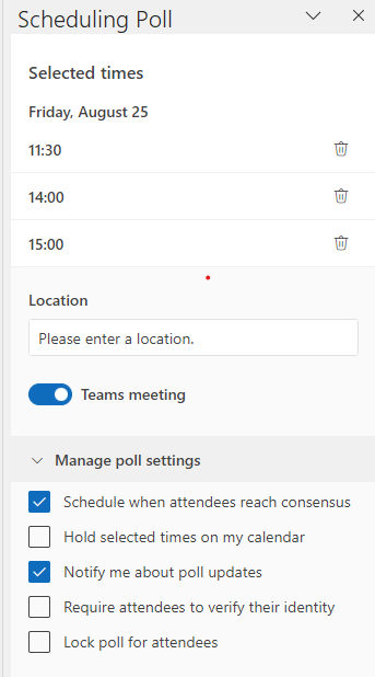 As you can see, you have choice. You can choose a time you prefer by voting in the poll. The sender can also see if you’re able to attend or not attend during this time. It’s really convenient for larger meetings or ones that might be more sensitive such as a 1-2-1. Likewise, if you require the input of key stakeholders, you’ll need to find a time that works best for all.