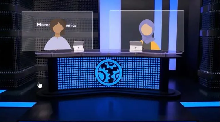 Alternatively, you can use together mode. If your speakers are not in one place you can set a customised background such as the below and indicate where people’s cameras will insert them. This gives the impression of the main speakers being together in one room and eliminates speaker’s individual backgrounds.
