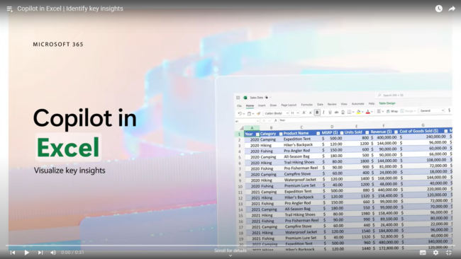 Excel: Microsoft 365 Copilot can help you analyse and visualise your data by suggesting formulas and creating charts for your spreadsheets. For example, you can ask Microsoft 365 Copilot to calculate the average, create a pie chart, or highlight outliers in your data. Watch a video of how Microsoft 365 Copilot in Excel can help you identify key insights.